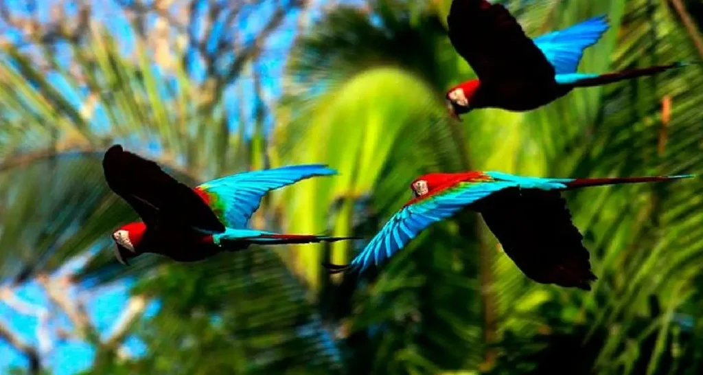 El avistamiento de guacamayos en las collpas de arcilla es una de las experiencias más impactantes. Cientos de aves se reúnen al amanecer en un espectáculo natural impresionante.
